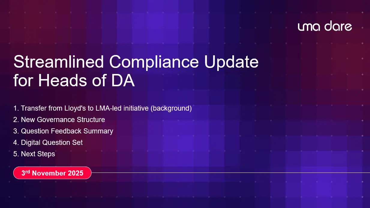 Across 2025 and 2026, as well as working on the CBAA, we are also looking to bring to life the Streamlined Compliance element of our vision, to modernise and digitise the coverholder onboarding and ongoing oversight process.